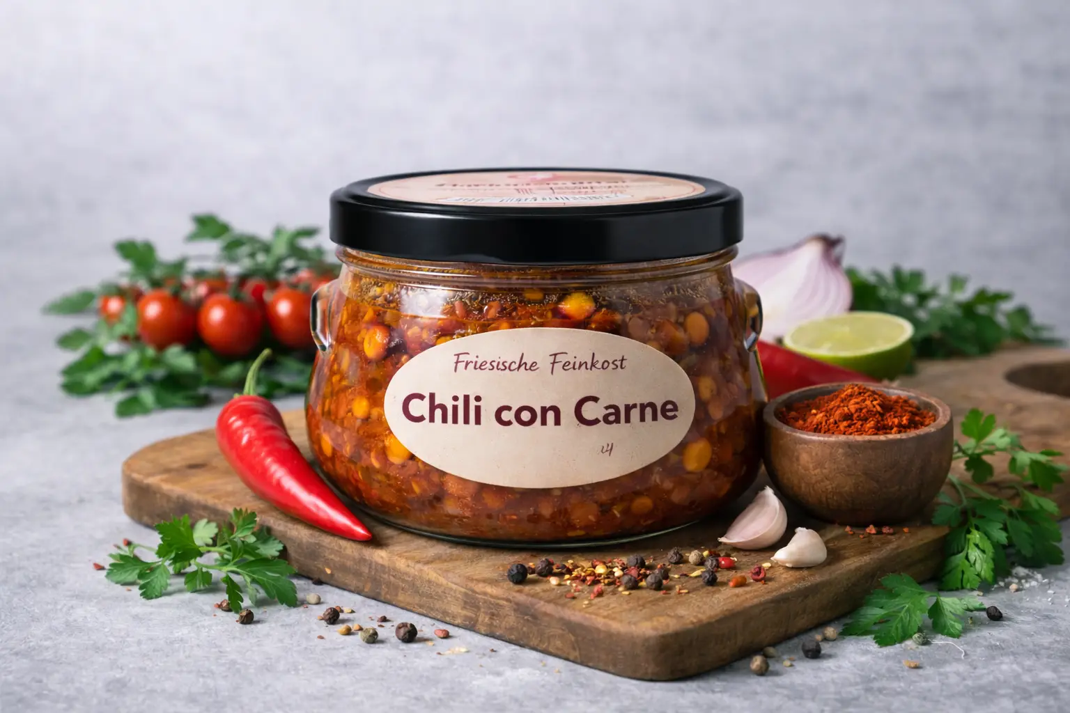 Unser Chili con Carne vom Gallowayrind wird aus hochwertigem Rinderhack hergestellt und langsam gegart. Kidneybohnen, Paprika und fruchtige Tomaten verbinden sich mit ausgewählten Gewürzen zu einem vollmundigen Chili mit ausgewogener Schärfe – herzhaft, aber nicht überladen.