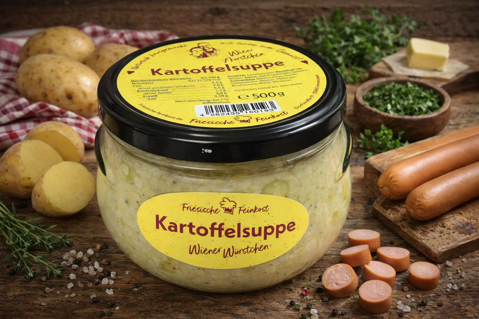 Verfeinert mit Wiener Würstchen entsteht eine deftige Mahlzeit, die perfekt in den Alltag passt – einfach erwärmen und genießen.